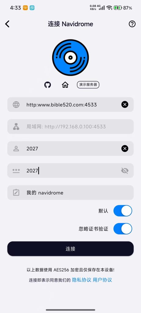 需要选择本站的IP地址:http://www.bible520.com:4533